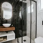 Bathroom facilities also include a separate toilet and a shower. There are a hairdryer and bath sheets for guests' comfort.